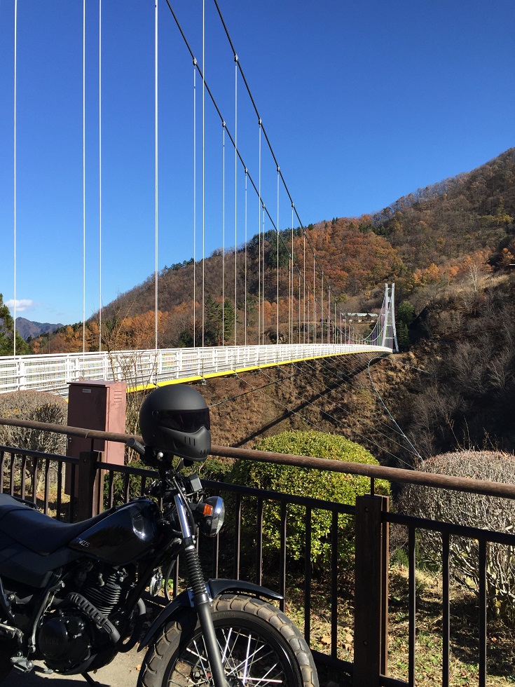 バイクで吊り橋走ってしまおうかと思いましたが、そうゆう事するとYouTubeに動画UPされてしまうので(笑)面倒でも一旦山を下りますよ。